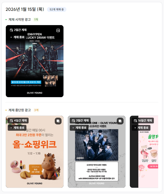 혹은 어느 시점에서 광고를 정리했는지”를 기준으로 프로모션 시기나 운영 전략을 가늠해볼 수 있고,