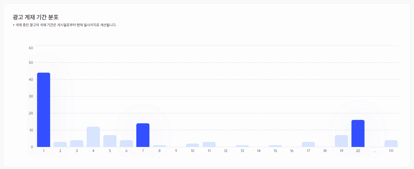 광고 게재 기간(1일 ~ 최대치) 기준으로