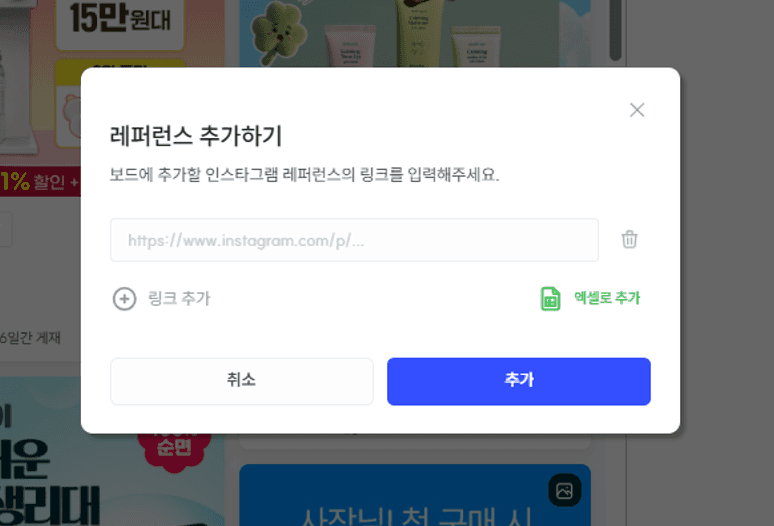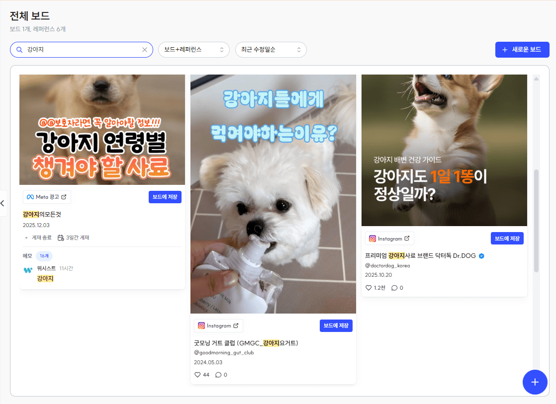 보드 안에 저장한 레퍼런스를 기반으로
