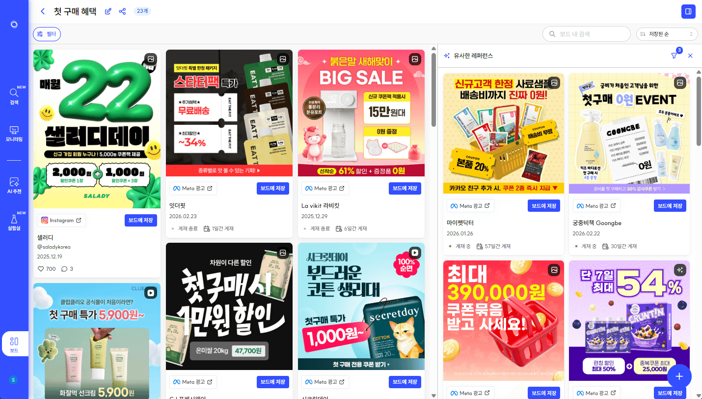 마음에 드는 광고나 목적에 맞는 레퍼런스를 먼저 보드에 저장한 뒤,