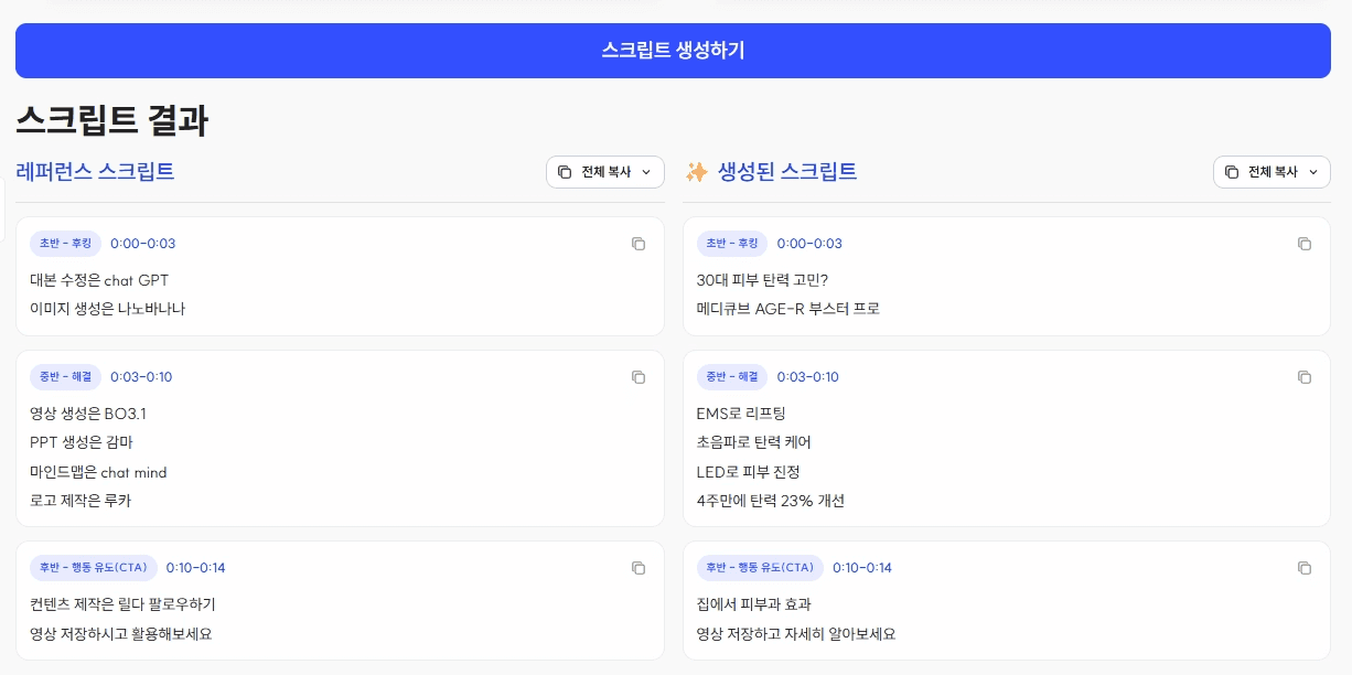 4. 저장한 레퍼런스를 바로 활용할 수 있도록, 스크립트 생성 기능도 준비했어요.