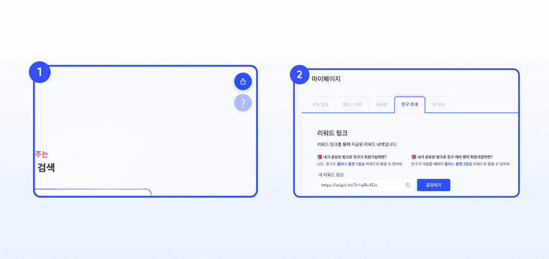 가입 후 발급되는 리워드 링크 또는 코드를 통해 친구가 가입하면,