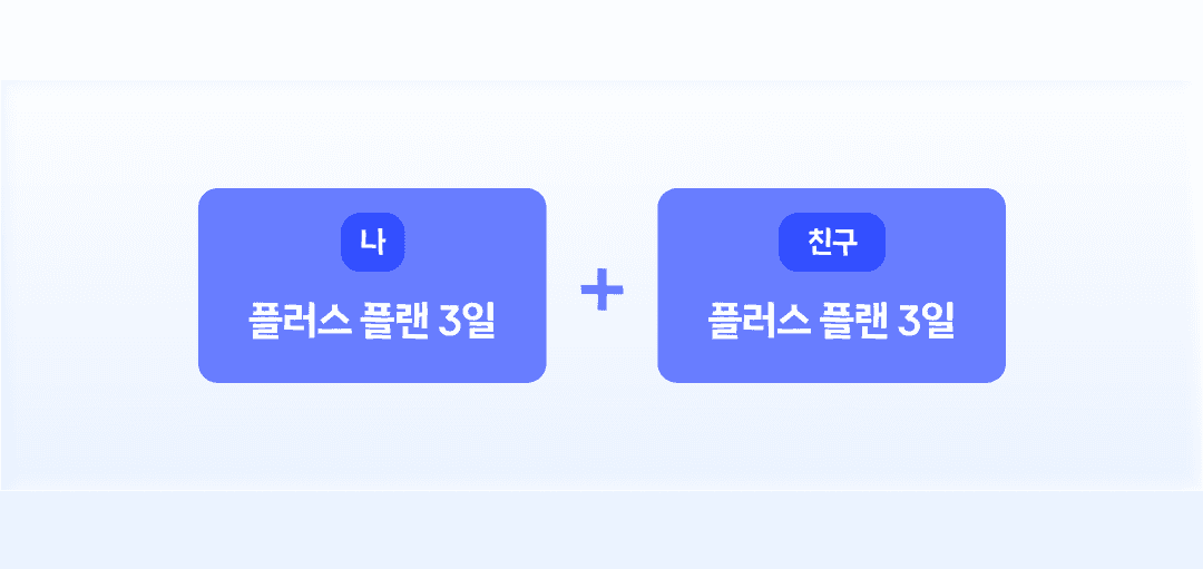 나와 친구 모두 3일간 플러스 플랜을 사용할 수 있어요!