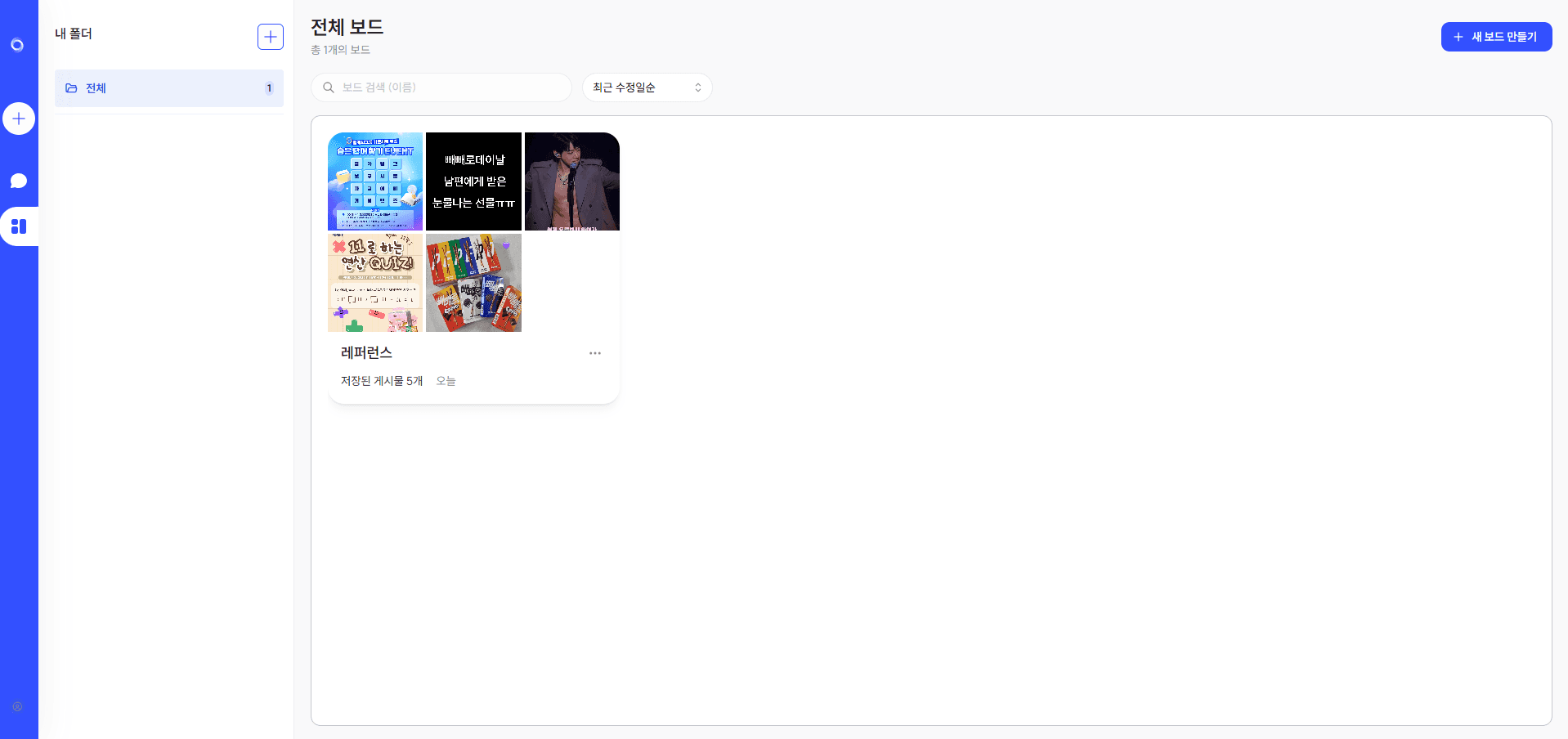여기서는 원하는 이미지만 모아둘 커스텀 보드를 생성하는 것은 물론,