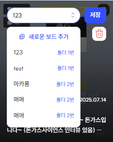 보드에 저장했던 항목을 다시 저장할 때, 보드별로 '저장된 보드'가 표시됩니다.