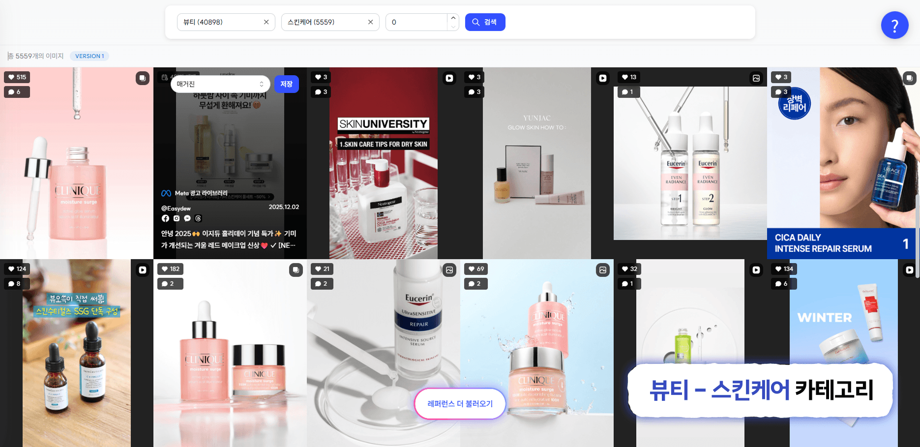 마찬가지로 인스타 - 메타라이브러리 통합 검색을 기반으로