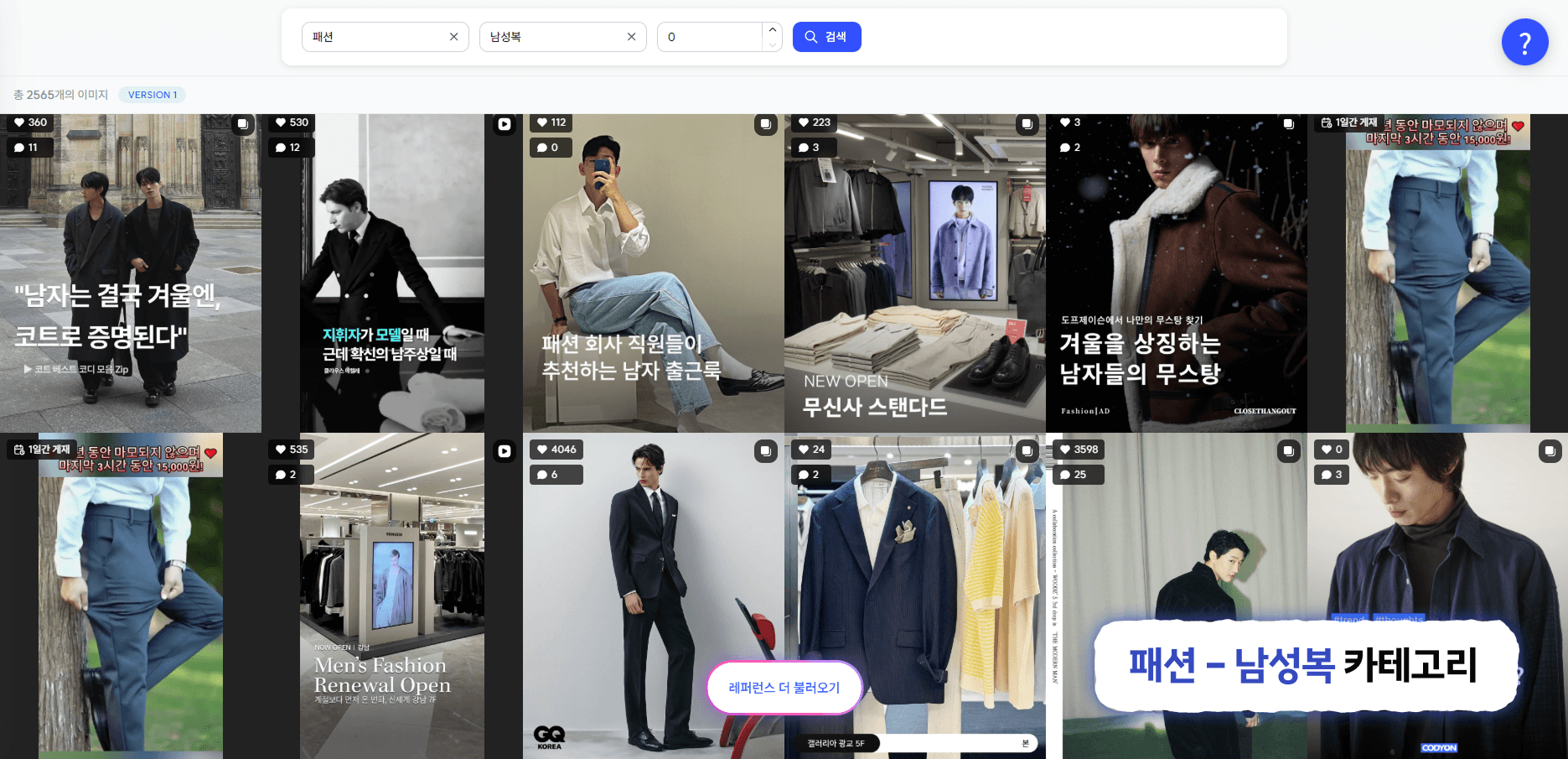 최신순, 성과순 정렬은 물론 이미지 검색이 가능한 형태에 더해