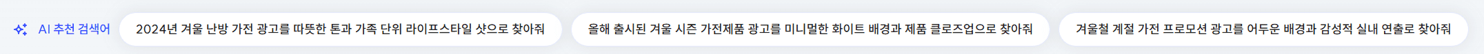 "올해 올라온 겨울철 계절성 가전 광고 콘텐츠를 찾아줘" 와 같이,