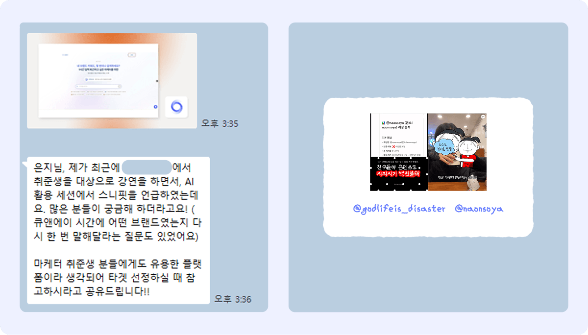 무엇보다도 큰 힘이 된 것은 감사하게도 마케터 분들 간의 추천을 통해서였어요.