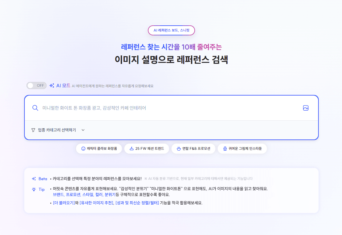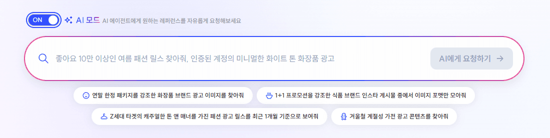 프롬프트 형식으로 찾고 싶은 레퍼런스를 요청하면, AI가 알아서 찾아줘요.