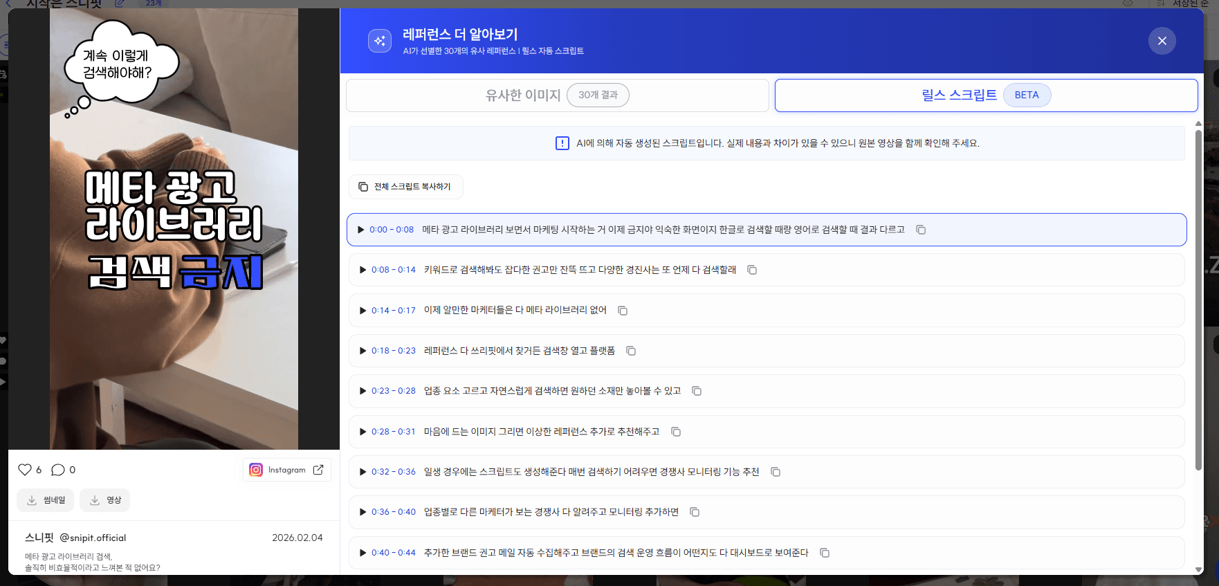 (현재는 Beta 기능으로 인스타그램 릴스에서만 동작하며, 유튜브 등도 빠르게 확장할 예정입니다!)
